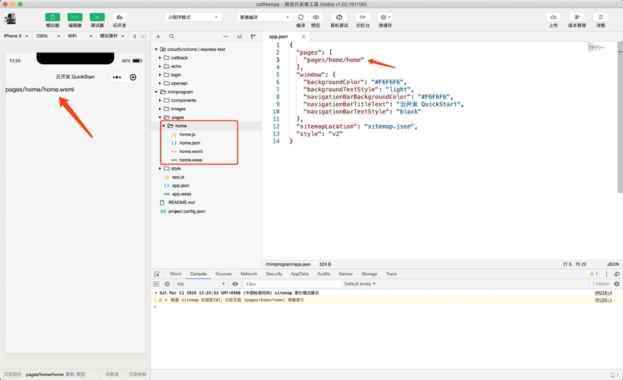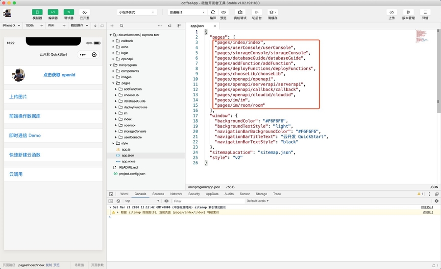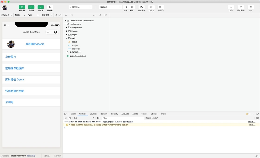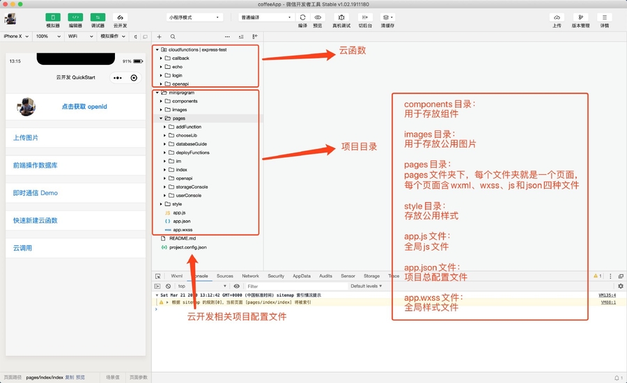 我们先学习静态页面开发,再深入学习云开发。因此,我们目前只需要关注 miniprogram 目录下的内容即可。